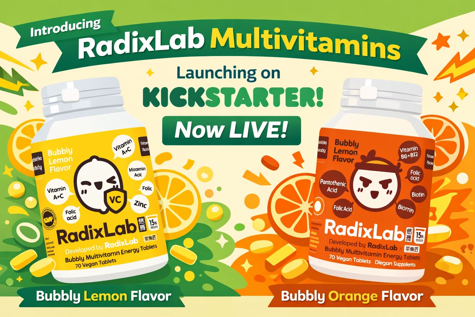 RadixLab is launching its Multivitamin Energy (orange) and Immunity (lemon) Tablets in Jan, 2026!